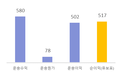 ② 1km당 순이익은 이익과 유가보조금환급액 환급액을 합한 값입니다.