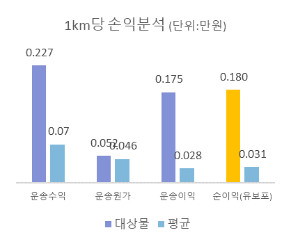 ◑ 1km당 순이익 : 1,800원