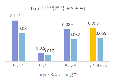② 1km당 순이익은 이익과 유가보조금환급액 환급액을 합한 값입니다.