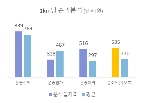 ◑ 1km당 순이익 : 535원