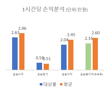 ◑ 1시간당 순이익 : 21,600원 (유가보조금 포함)