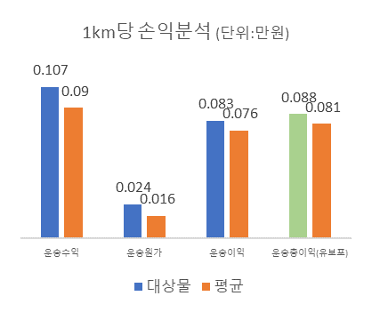② 1km당 총이익은 이익 + 유가보조금환급액