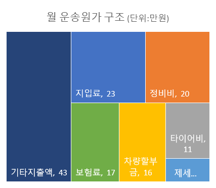 ◑ 총 지출비용은 ( 117만원) 으로 대표적 항목은 지입료 (23만), 정비비(20만원), 보험료(17만원), 기타(43만원) 임