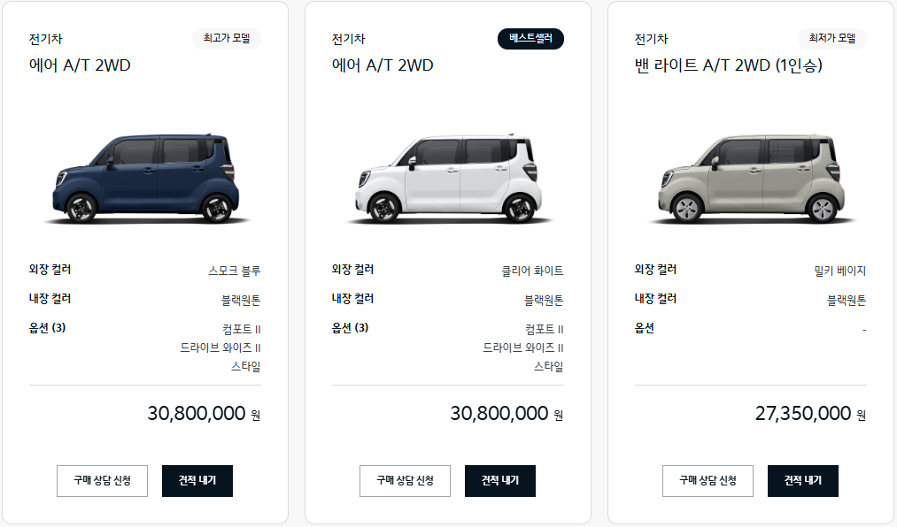 레이EV 색상 중에서 가장 인기있는 색상은 클리어 화이트 색상입니다.