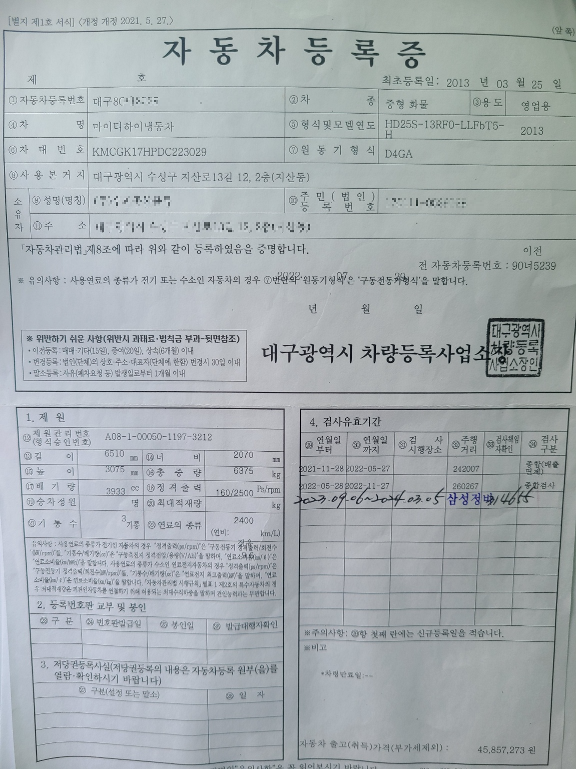 - 넘버종류: 영업용(임대)