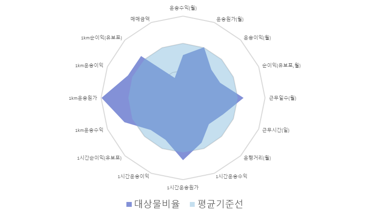 1km 당 순이익에 유가보조금을 더한 금액입니다. 이는 일자리의 작업 효율성과 경제적 가치를 평가하는 항목입니다.