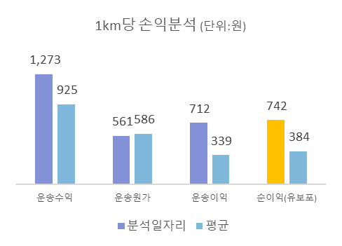 ◑ 1km당 순이익 : 742원