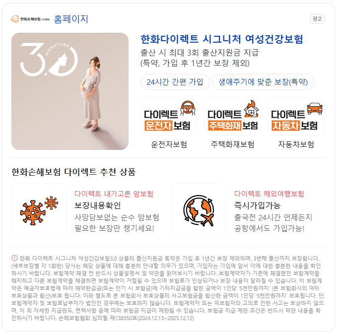 - 한화손해보험의 대표적인 개인용 자동차 보험 상품으로, 설계사 또는 대리점을 통한 오프라인 채널 판매를 중심으로 운영될 것으로 예상됩니다.